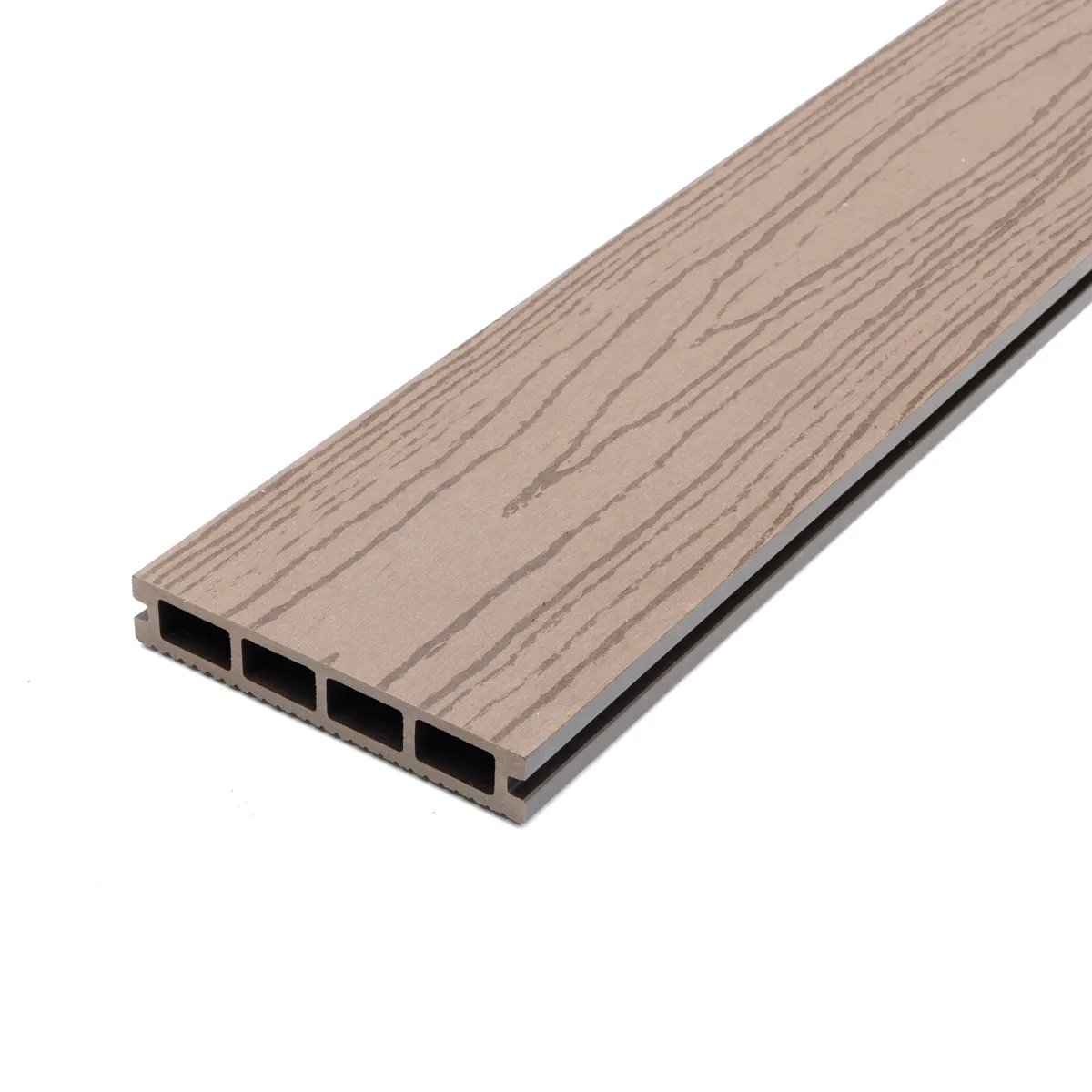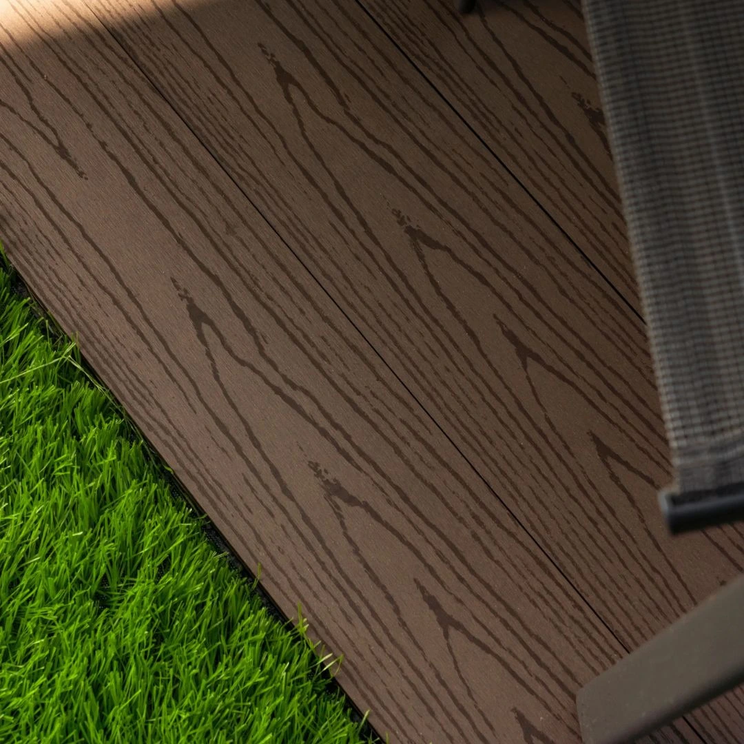 Dale un nuevo estilo a tus espacios exteriores con nuestro Deck WPC (Wood Plastic Composite), una opción sostenible y funcional que combina madera reciclada y polímeros plásticos en una estructura homogénea.