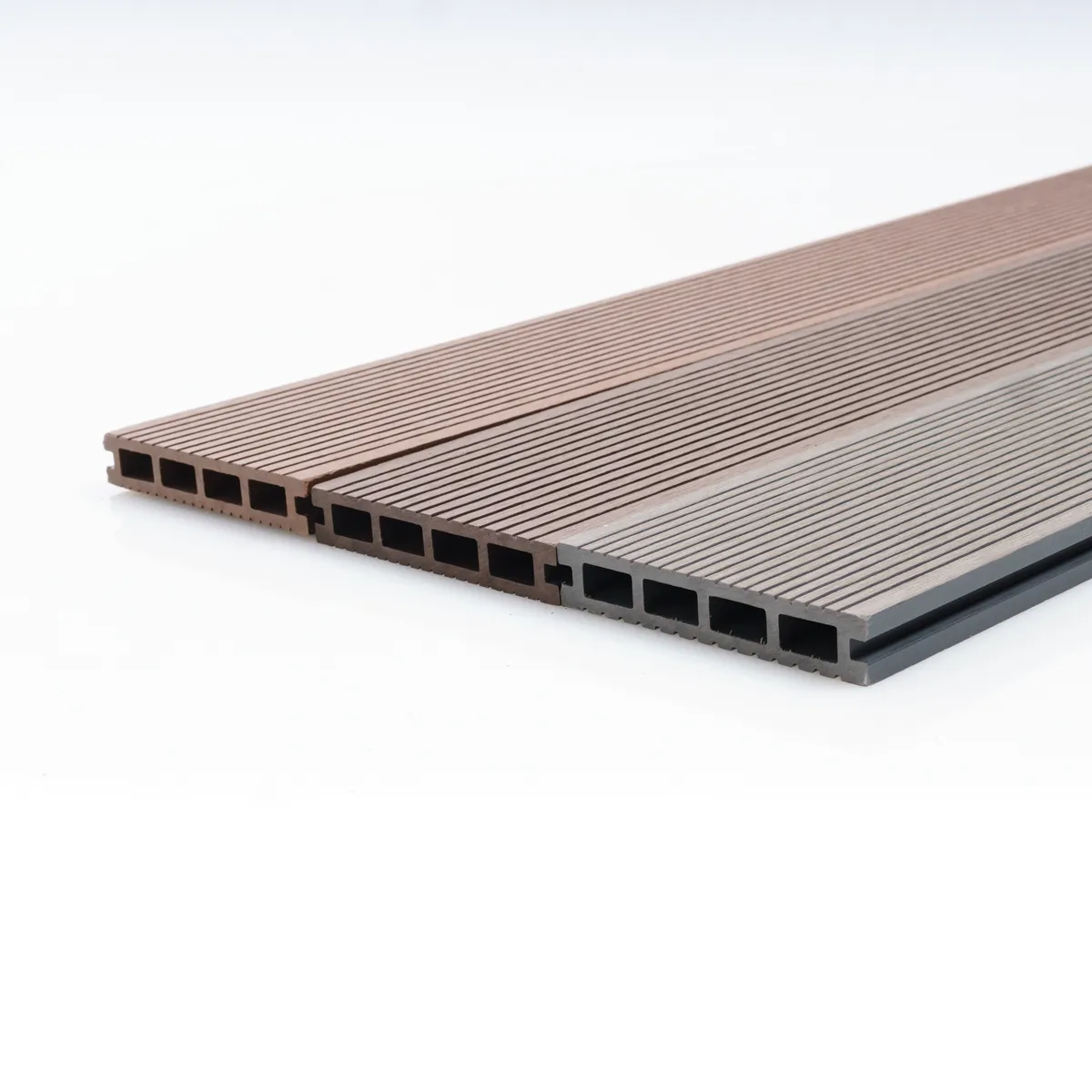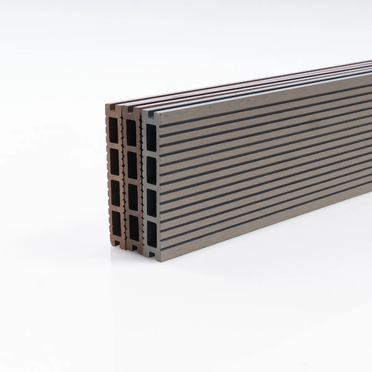 Dale un nuevo estilo a tus espacios exteriores con nuestro Deck WPC (Wood Plastic Composite), una opción sostenible y funcional que combina madera reciclada y polímeros plásticos en una estructura homogénea.
