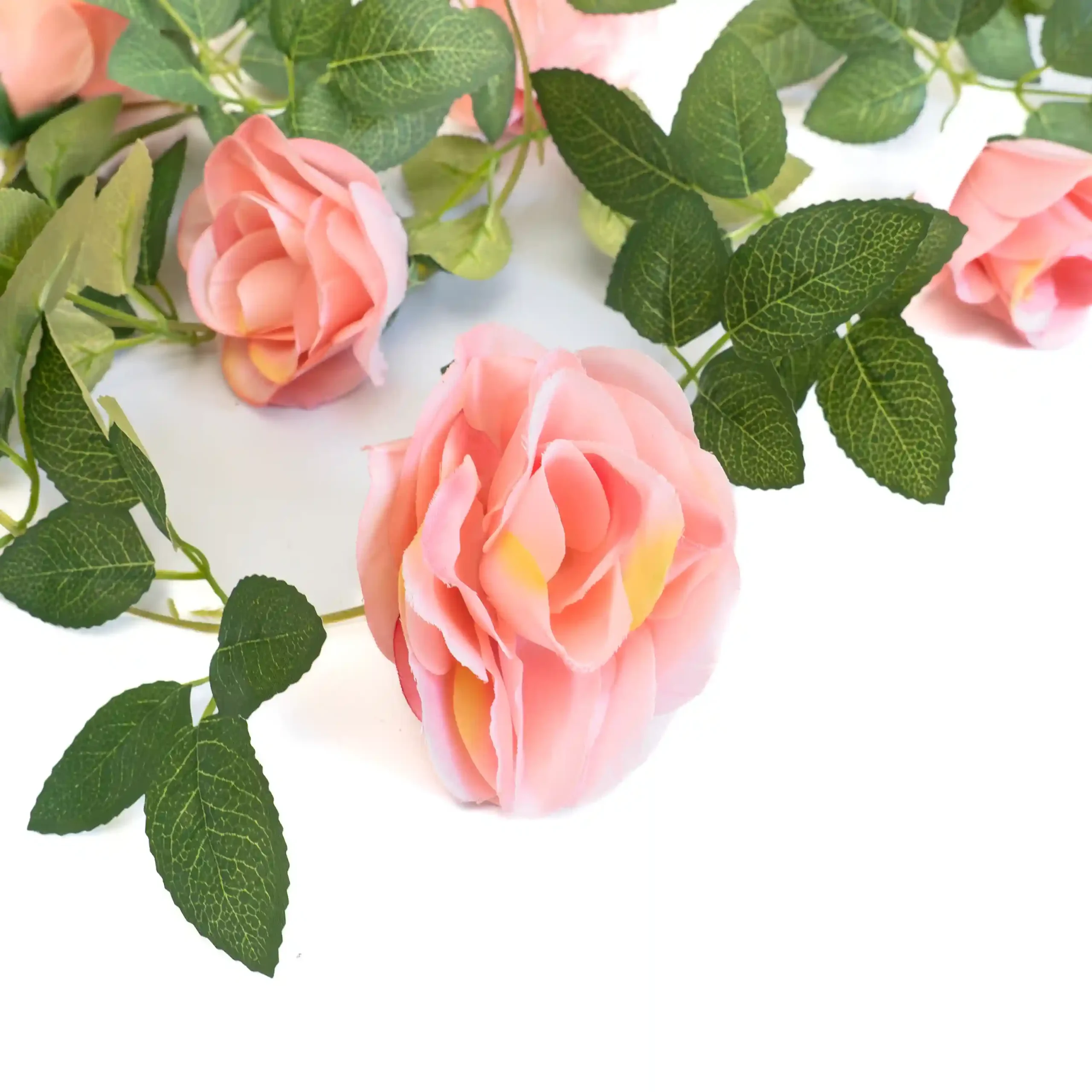 🔹 Aspecto realista: La combinación de hojas verdes con flores rosas crea un efecto natural y decorativo.