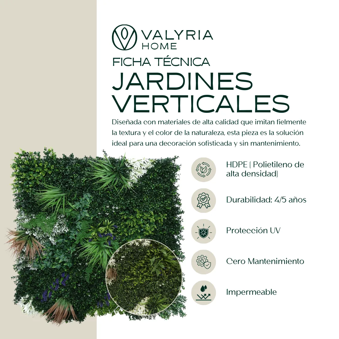 - Sin mantenimiento: Solo requiere limpieza ocasional; olvidate de podar o regar.
