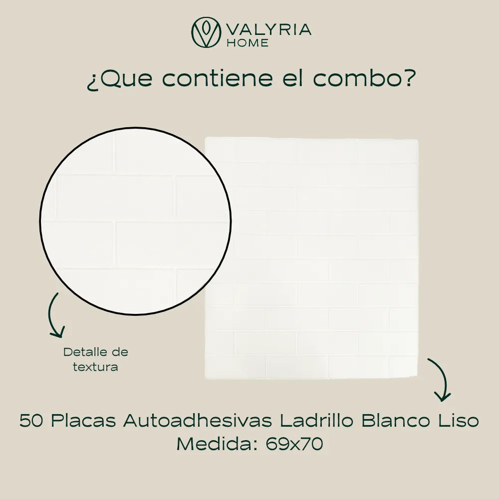 🛒El precio equivale a 50 Placas Autoadhesivas Ladrillo Blanca Liso de 69×70