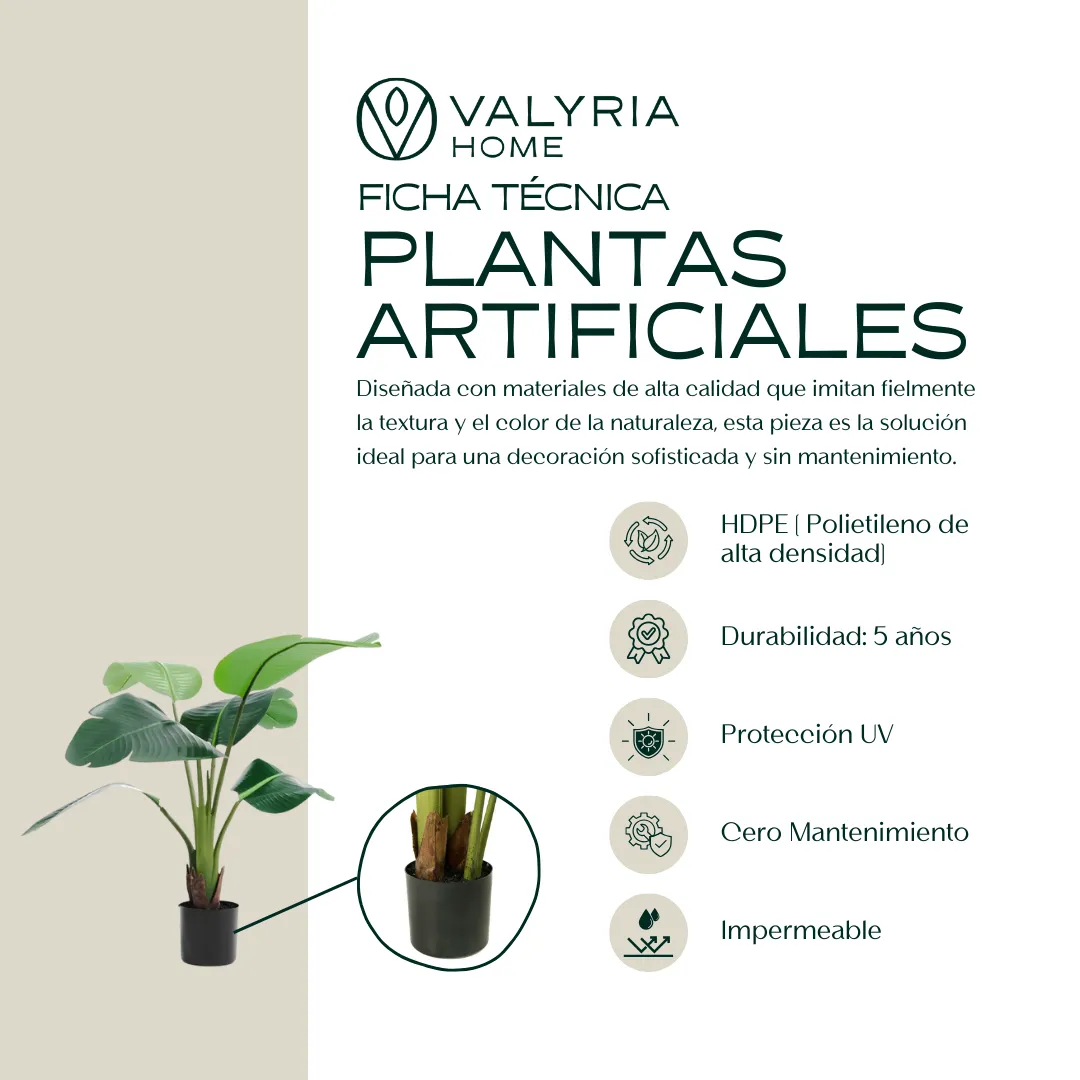 En Valyria Home, ofrecemos plantas artificiales de alta calidad, diseñadas para embellecer cualquier ambiente sin esfuerzo. Con nuestra Planta Ave de Paraíso de 90 cm, podés disfrutar de un estilo tropical y elegante sin preocuparte por riegos ni cuidados.