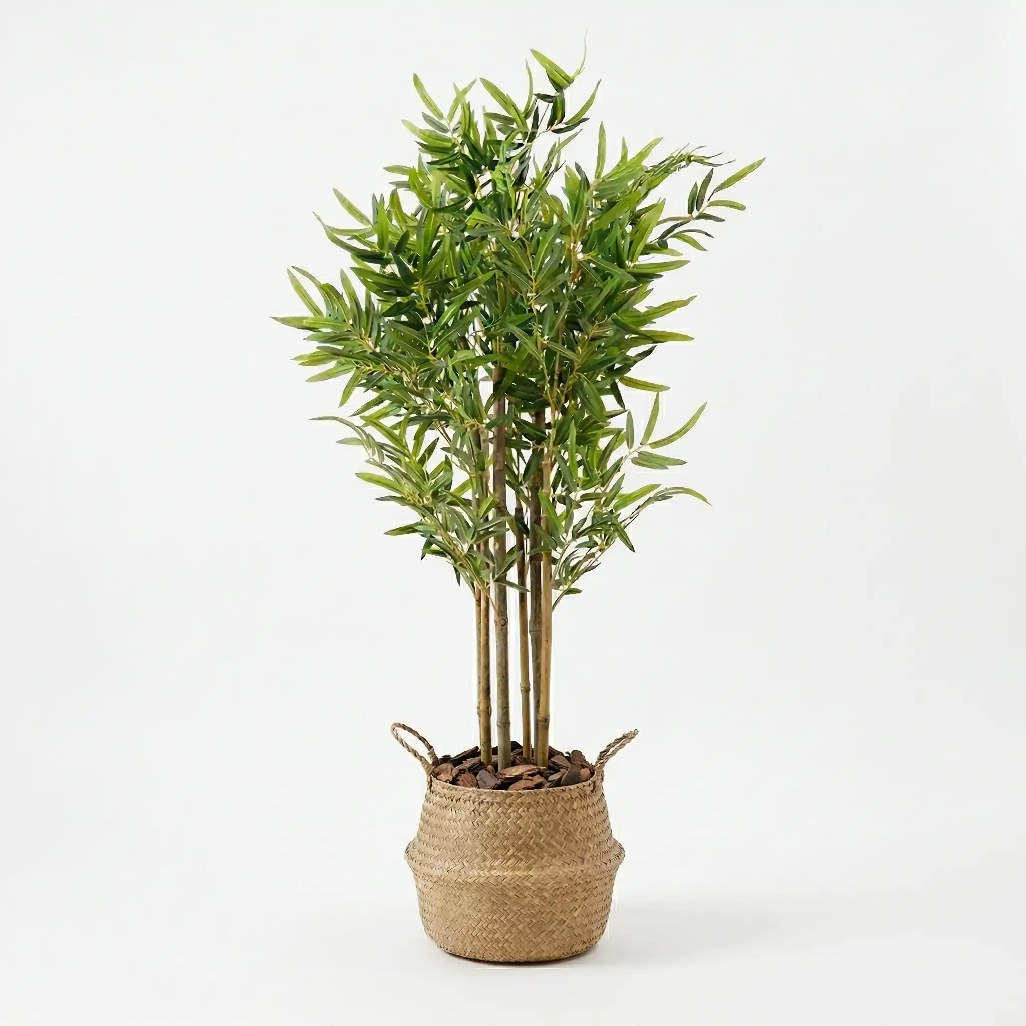 Planta Artificial Bambú 120cm + Cesto 27cm + Corteza