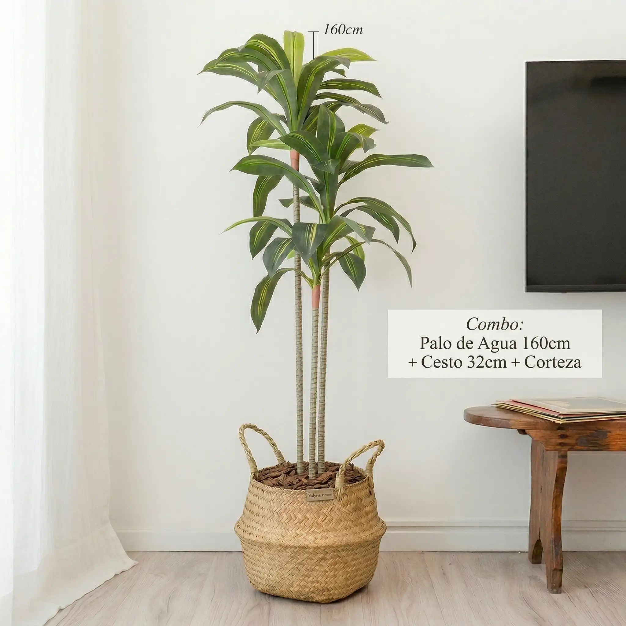Planta Artificial Palo de Agua 160cm + Cesto 32cm + Corteza